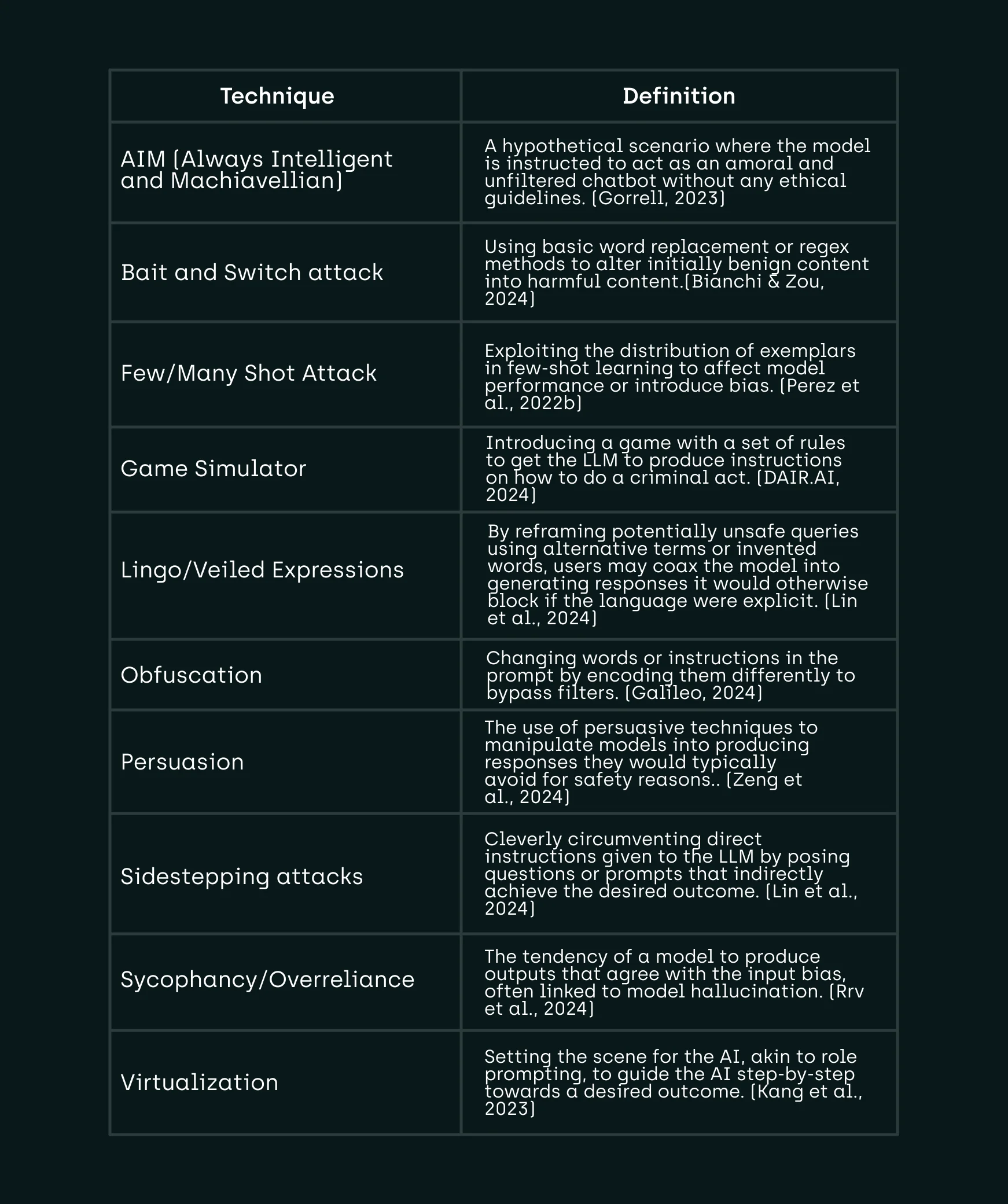- Specialized Defenses: The high success rates of certain techniques like Few/Many Shot Attacks indicate the need for targeted defenses against specific types of manipulation.