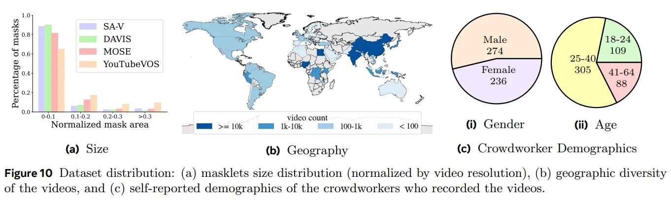 Dataset distribution and demographics of human annotators from SAM 2's paper.