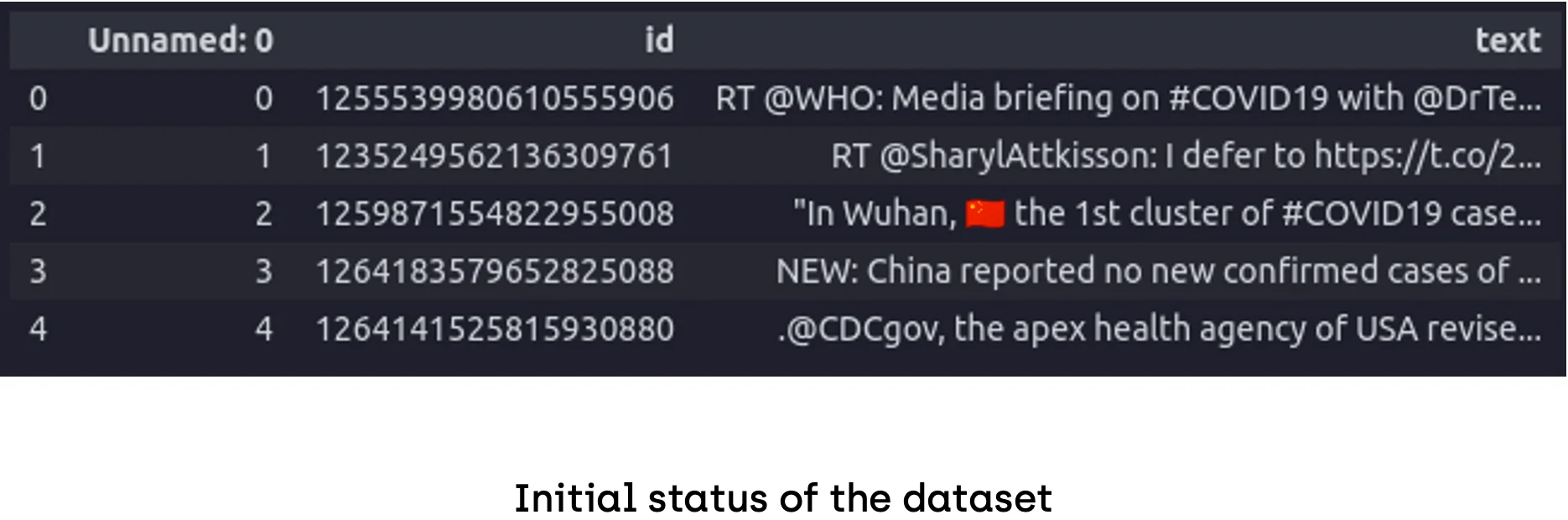 ECTF is a dataset for Twitter fake news detection in the Covid-19 domain. It consists of 3 files; fake.csv which contains fake tweets, genuine.csv which contains real tweets, and unlabelled.csv which contains mixed unlabeled data. In this tutorial, we will use both genuine.csv and fake.csv. Each file of them contains 2,000 tweets with the following fields: