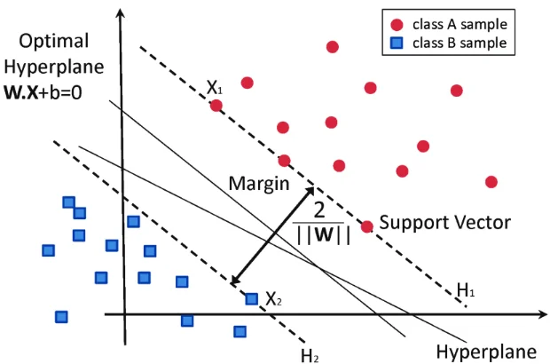 Support Vector Machines (SVM) are a class of supervised machine learning algorithms used primarily for classification and regression tasks. The fundamental concept behind SVM is to find the optimal hyperplane that effectively separates data points belonging to different classes while maximizing the margin between them. SVMs work well in scenarios where the data is linearly separable, and they can also be extended to handle non-linear data by using techniques like the kernel trick. By mapping data points into higher-dimensional feature spaces, SVMs are capable of capturing complex relationships between features and labels, making them effective in various image recognition tasks.