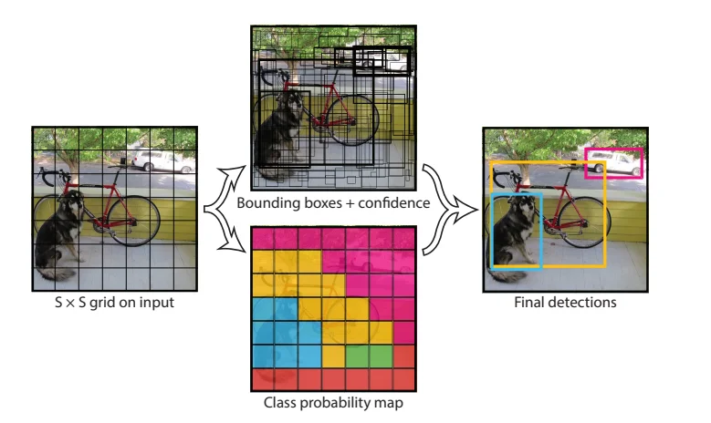 YOLO is a groundbreaking object detection algorithm that emphasizes speed and efficiency. YOLO divides an image into a grid and predicts bounding boxes and class probabilities within each grid cell. This approach enables real-time object detection with just one forward pass through the network. YOLO's speed makes it a suitable choice for applications like video analysis and real-time surveillance.