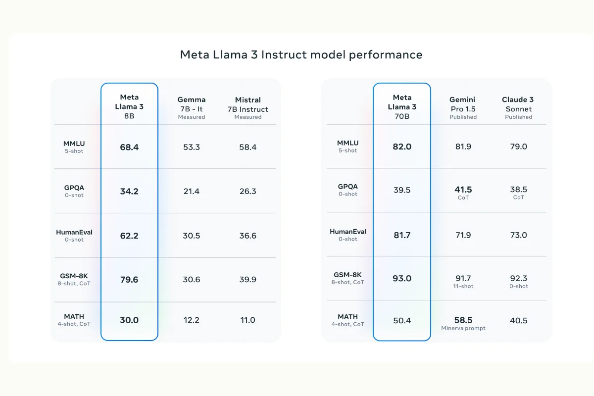 In April 2024, Meta released Llama 3, a large language model touted to be more powerful and diverse than its predecessors, Llama 1 and 2. The family of models has a 70b parameter and a smaller 8b parameter version, both of which have instruction-tuned versions as well. One way Llama 3 is set apart from other large language models, like Claude, Gemini, and GPT, is that Meta has released the model as open source - which means it is available for research and commercial purposes. However, the license is custom and requires that users adhere to specific regulations to avoid misuse.