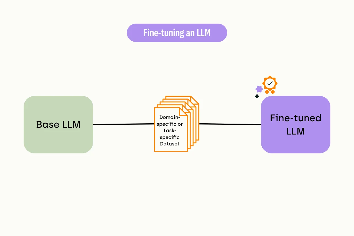 LLM fine-tuning is essentially adapting a pre-trained LLM to suit a particular task or application by further training it on a domain-specific dataset. This adjusts the LLM's parameters to suit the new domain-specific data and improves the model performance for a better user experience.