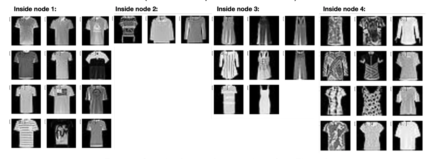 Looking at nodes 2 to 3, we can see that the quality of our dataset is not perfect. The definition of class “T-shirt/Top” is complex and some assets inside those nodes are difficult to classify even for humans.