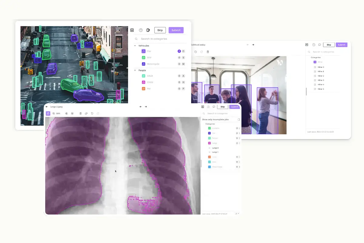 - Multilayer Annotation: Annotators can work more efficiently by focusing on one image aspect at a time. This reduces cognitive load and helps prevent errors. For example, annotators can switch between layers dedicated to specific tasks, such as separately labeling vehicles, pedestrians, and road signs in a street scene.